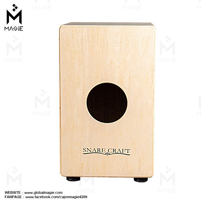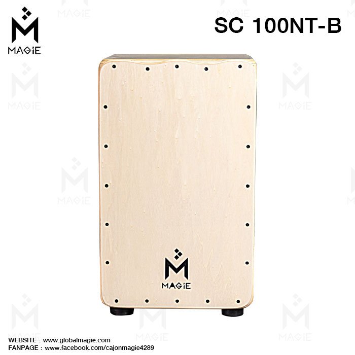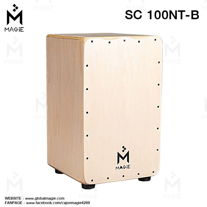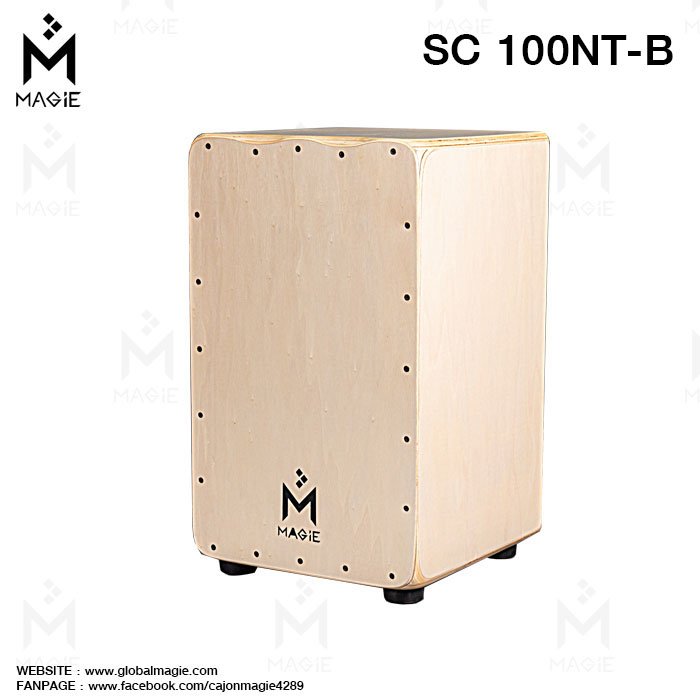 Magie Curly Snarecraft Cajon Series Plus รุ่น SC 100NT-B เป็นกลองที่มีขนาด 11 3/4"x19 3/4"x11 3/4" ตัวถังไม้ เบริช์ ปลอดสารฟอร์มัลดีไฮน์ ผ่านมาตราฐาน CARB ทำสี Polyurethane สีธรรมชาติลายไม้ แผ่นหน้าวีเนียร์ไม้อัด 5 ชั้น ไม้เบริช์ ทำสี Polyurethane สีธรรมชาติลายไม้
